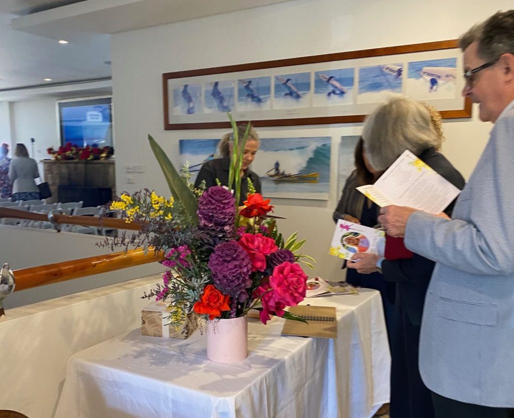 “Because Mum was a lover of education and was still educating herself and others, Karin suggested we make a display of some of her books and give away the books along with a bookmark we had made. There was a collage of photos and as she was also a painter, we had her paintings displayed as well.